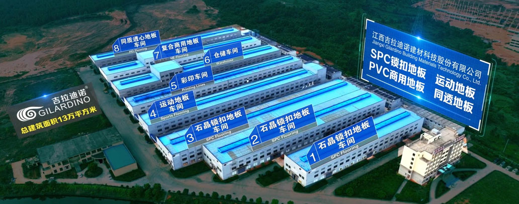 江西吉拉迪諾建材科技股份有限公司,占地面積近300畝,建筑面積13萬多平方米,總投資5億元,擁有20余條生產線,員工近300人。現有SPC石晶地板生產線十條、德國豪邁開槽線兩條、大型商用卷材生產線四條、水墨彩印生產線兩條、同透地板生產線兩條,超大型運動地板生產線一條、是彈性地板行業產能量大,硬件實力強的生產廠商之一。